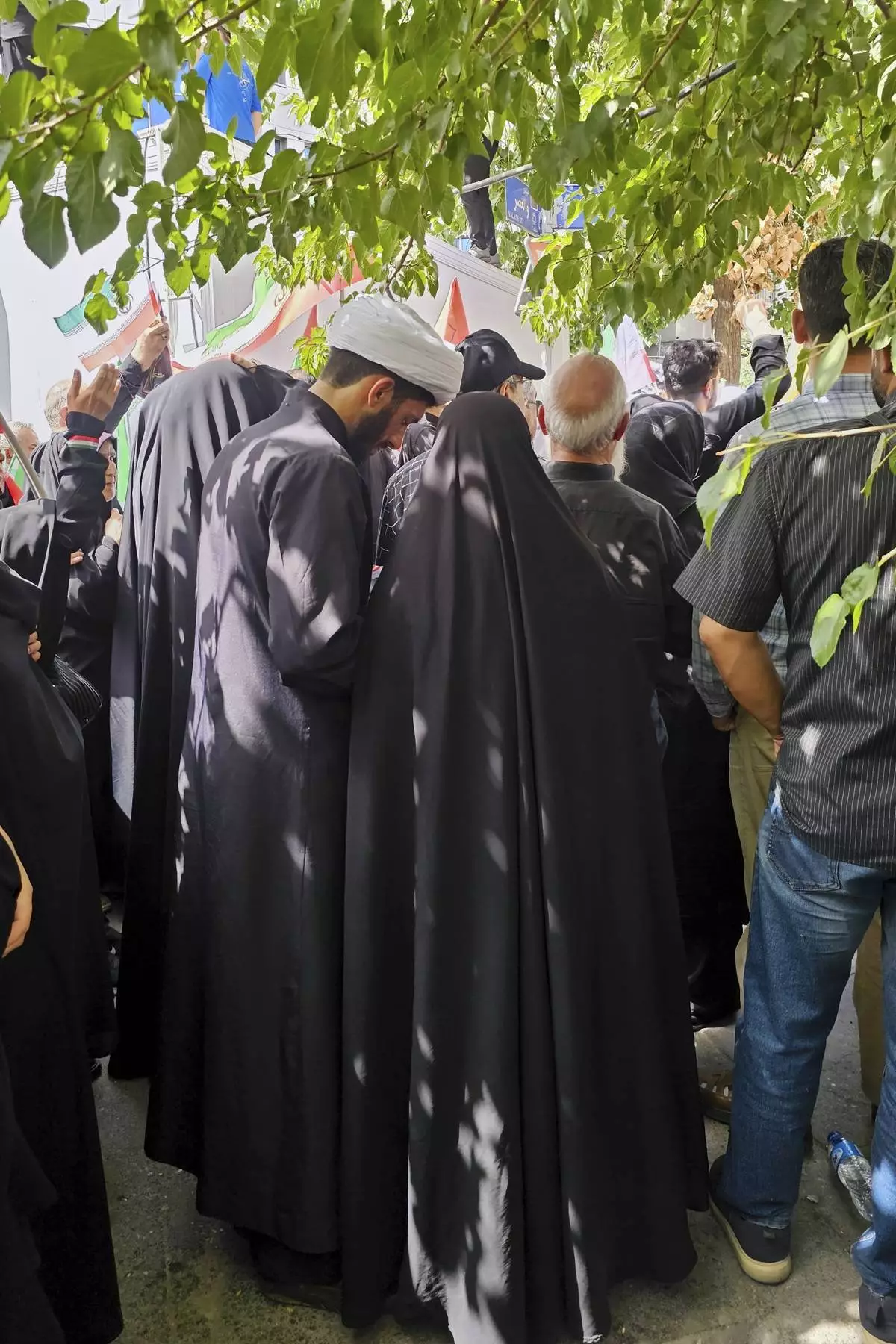 Mourners gather at a collective funeral ceremony for victims of recent explosions in Tehran, Iran, Saturday, June 28, 2025. (AP Photo)