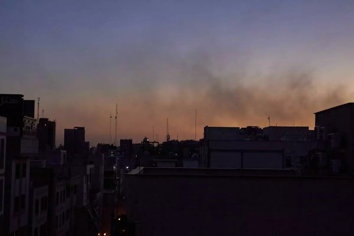 Smoke from earlier strikes hangs in the air at dusk during in Tehran, Iran, Wednesday, June 18, 2025. Many residents had evacuated, and those who stayed kept their homes and streetlights dim as a precaution. (AP Photo)