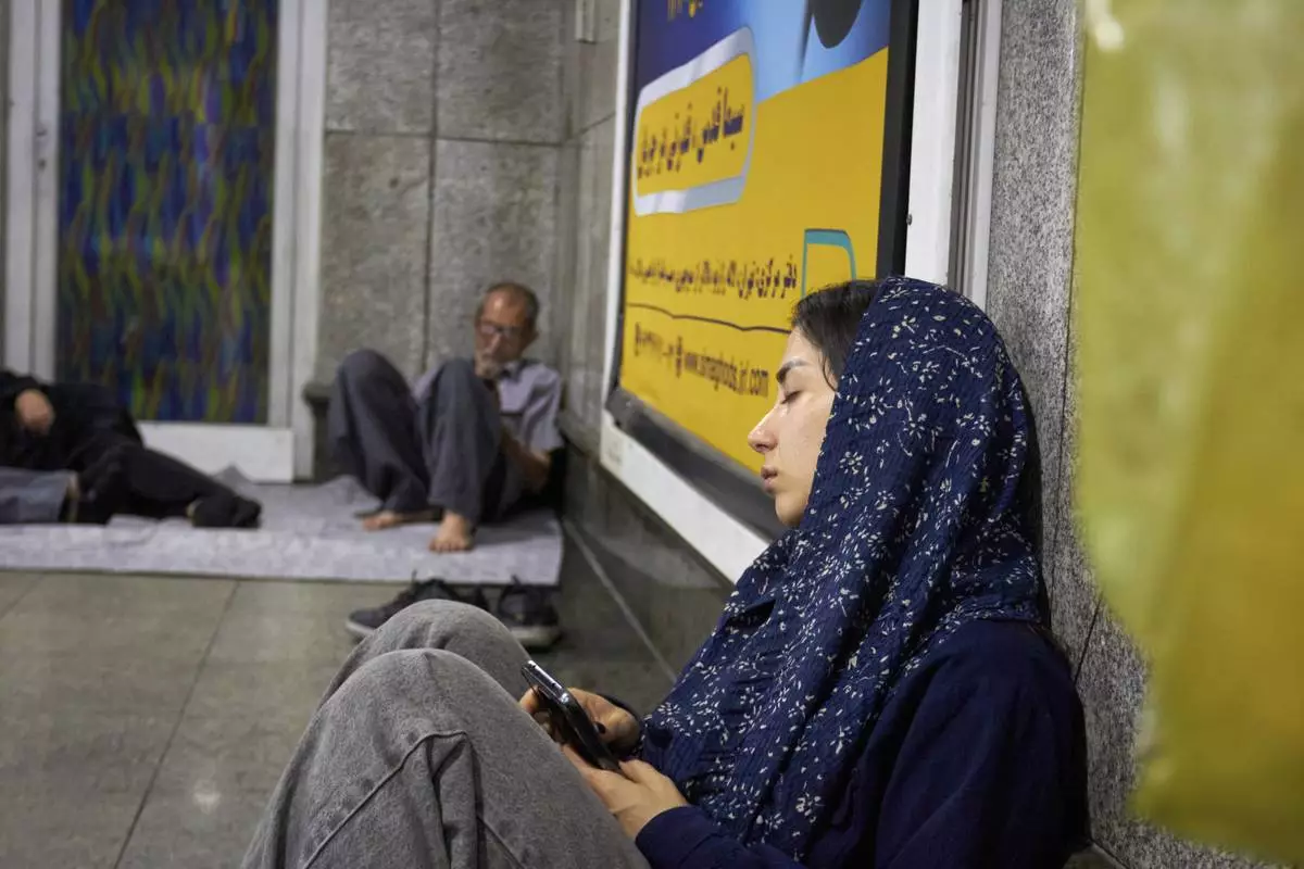 A young woman takes shelter in a metro station following a midnight evacuation alert for Israeli strikes in Tehran, Iran, Tuesday, June 24, 2025. One of the announced missile targets was just 400 meters away, dangerously close to both the station and her home. (AP Photo)