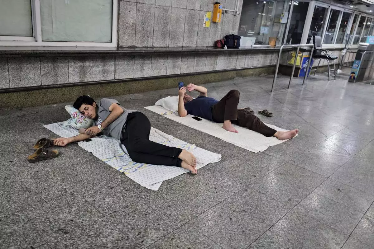 After an emergency evacuation alert, residents seek shelter in a metro station in Tehran, Iran, Tuesday, June 24, 2025. That night, evacuation alerts were issued for two central neighborhoods in the middle of the night. (AP Photo)