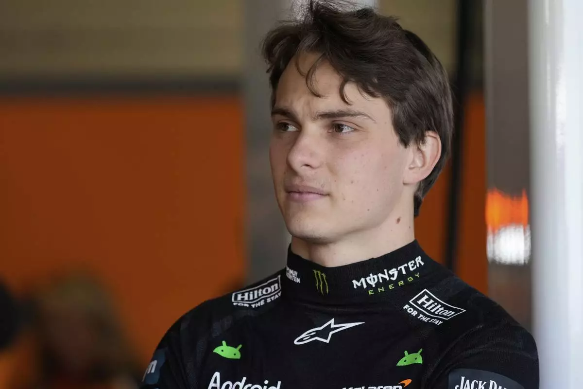 McLaren driver Oscar Piastri of Australia stands in the pit lane before the first practice of the British Formula One Grand Prix in Silverstone, England, Friday, July 4, 2025. (AP Photo/Darko Bandic)