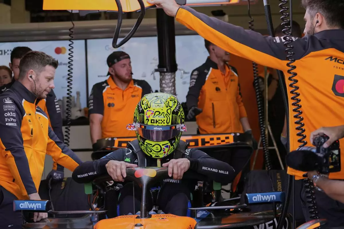McLaren driver Lando Norris of Britain gets ready during the first practice of the British Formula One Grand Prix in Silverstone, England, Friday, July 4, 2025. (AP Photo/Darko Bandic)