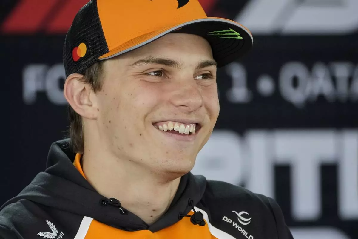 McLaren driver Oscar Piastri of Australia talks to the media at the Silverstone racetrack, ahead of the British Formula One Grand Prix, in Silverstone, England, Thursday, July 3, 2025. (AP Photo/Darko Bandic)