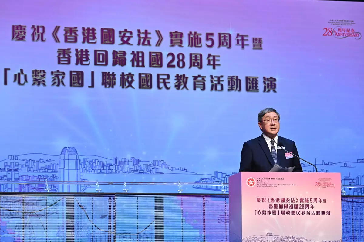 The Education Bureau (EDB) today (July 4) held the Celebration of the 5th Anniversary of the Implementation of the Hong Kong National Security Law cum the 28th Anniversary of Hong Kong's Return to the Motherland "Love Our Home, Treasure Our Country" Joint School National Education Activities Gala to showcase the fruitful achievements of the school year.