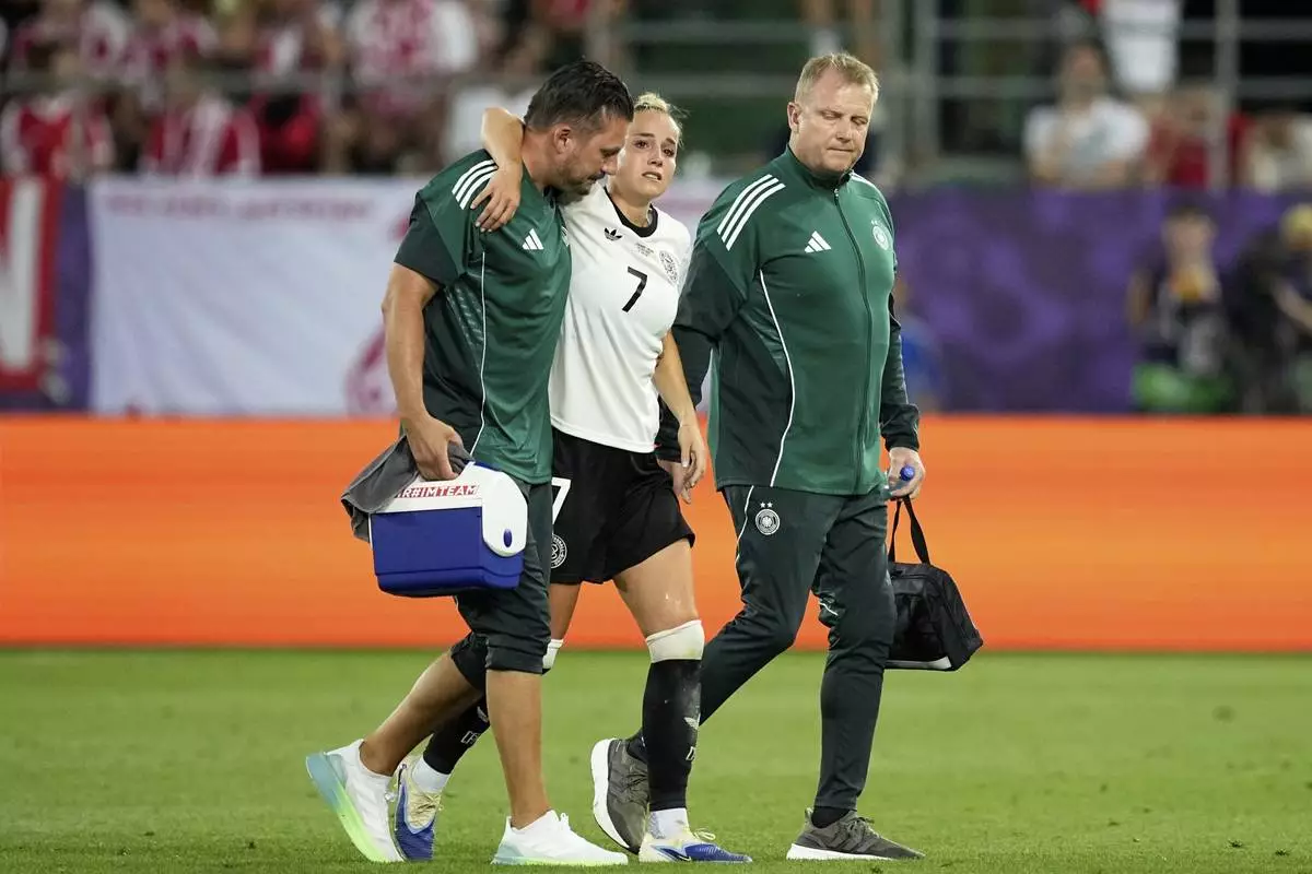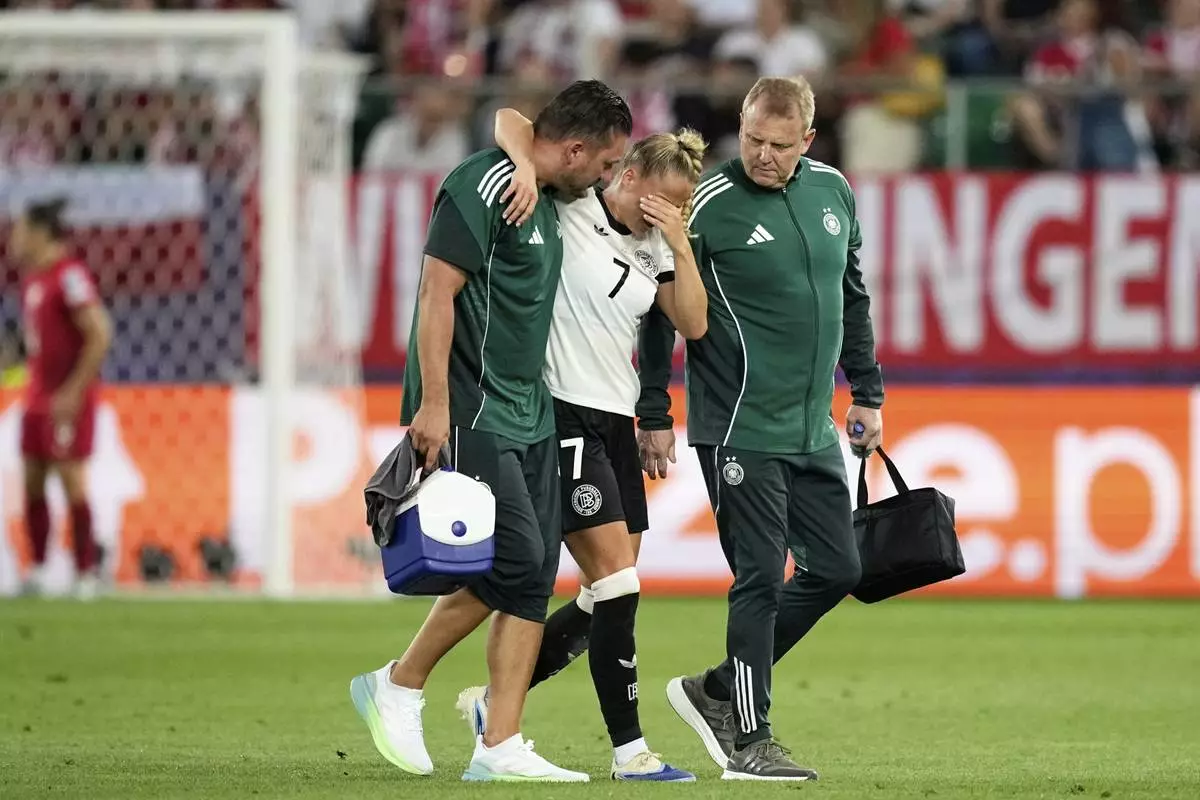 ST. GALLEN, Switzerland (AP) — Germany captain Giulia Gwinn suffered an apparent knee injury in a 2-0 opening win against debutant Poland at the Women’s European Championship on Friday.