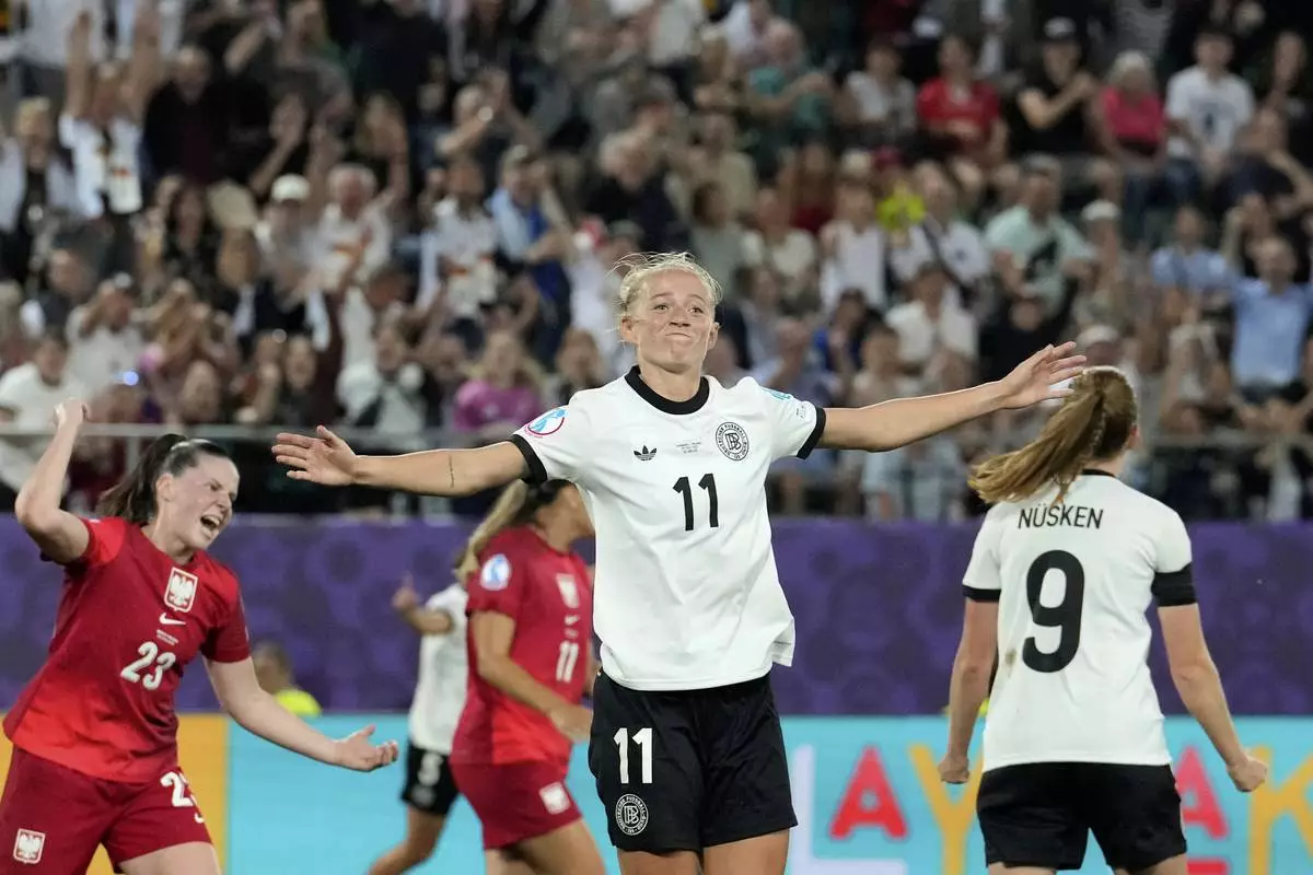 ST. GALLEN, Switzerland (AP) — Jule Brand scored one goal and set up the other to lead Germany to a 2-0 win over debutant Poland in their Women's European Championship opening game on Friday.