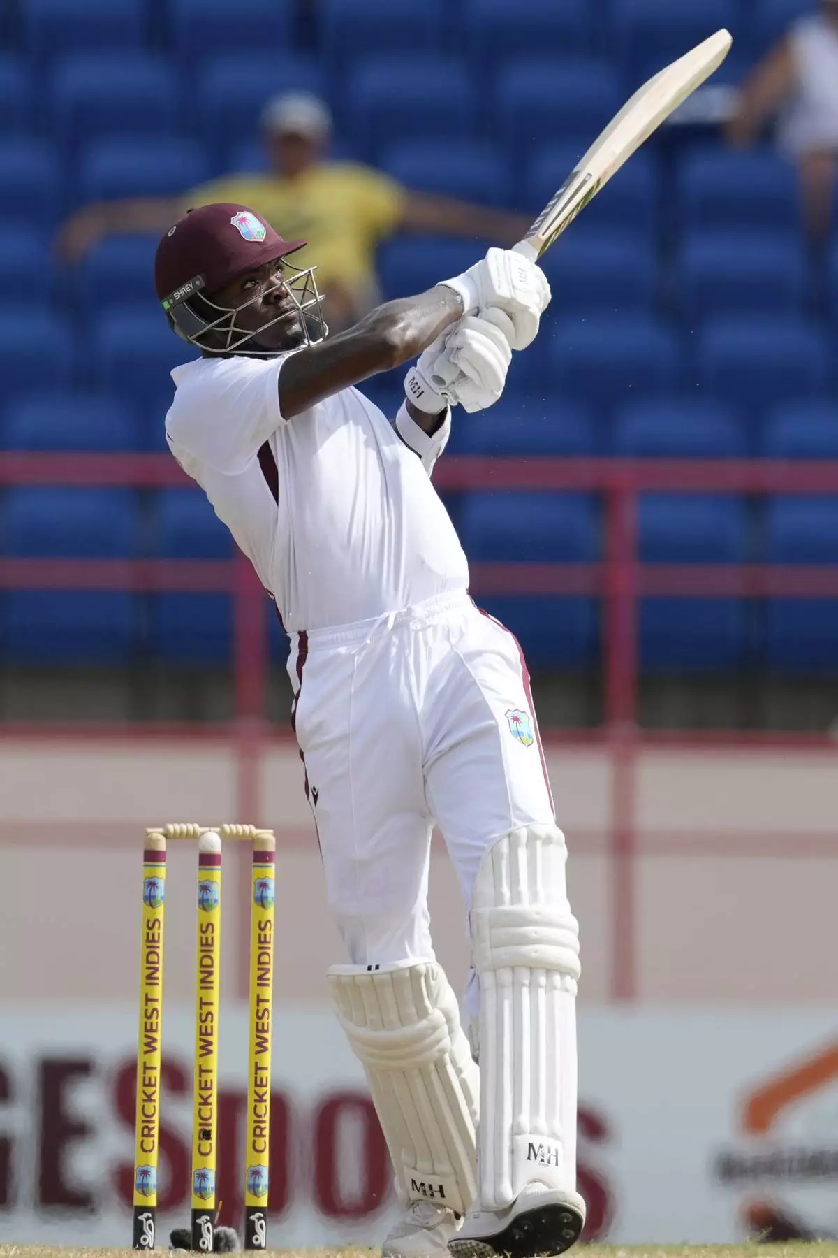 West Indies' Brandon King plays a shot against Australia during day two of the second cricket Test match at National Cricket Stadium in St. George's, Grenada, Friday, July 4, 2025. (AP Photo/Ricardo Mazalan)