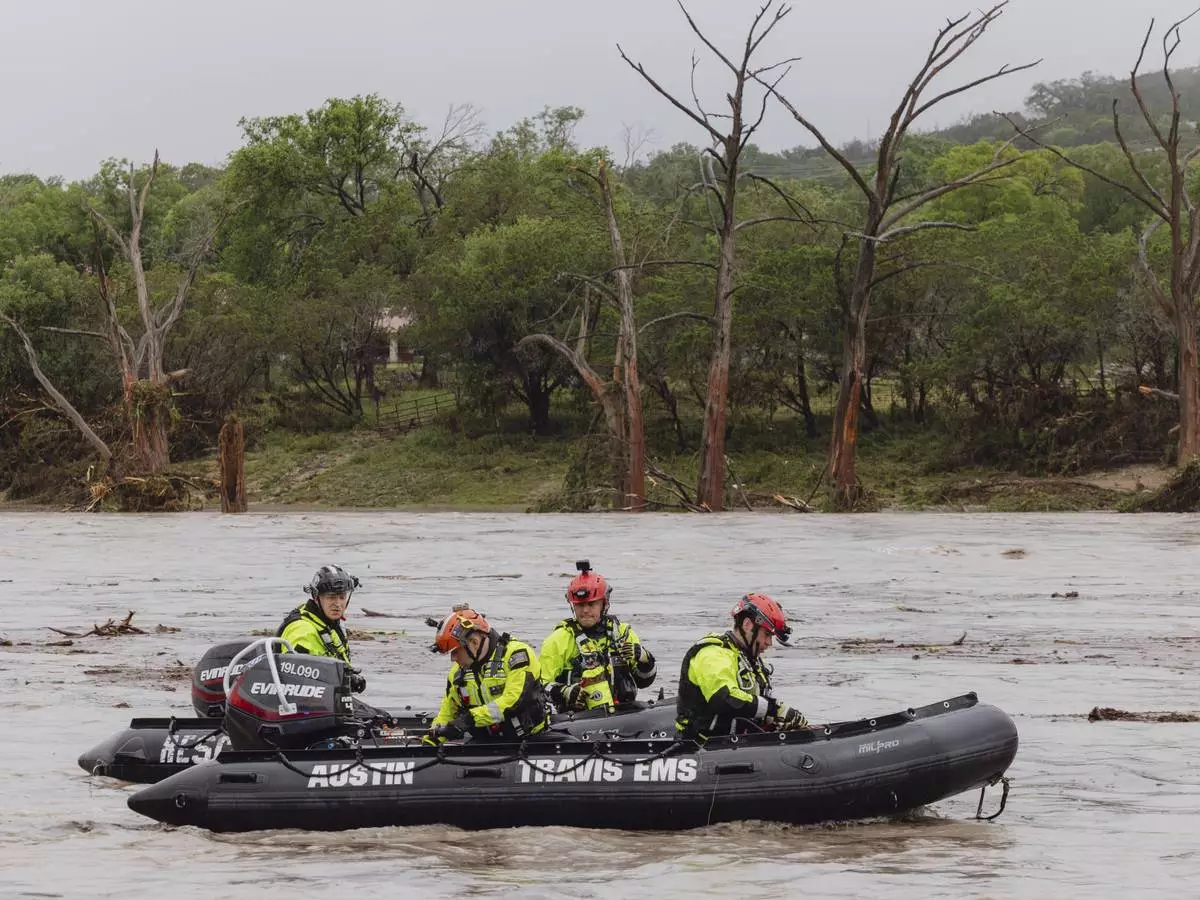 First responders deploy boats along the Guadalupe River after deadly flooding on Friday, July 4, 2025, in Kerrville, Texas. (Christopher Lee/The San Antonio Express-News via AP)