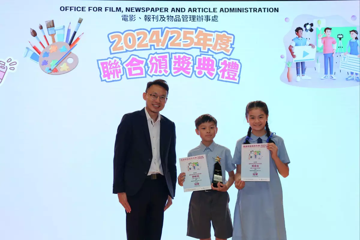 The Office for Film, Newspaper and Article Administration (OFNAA) held a prize presentation ceremony today (July 5) for the "Healthy Student Video Contest 2025", the "'Control of Obscene and Indecent Articles Ordinance' Slogan and Colouring Competition 2024-25" and the "Healthy Mobile App Sticker Design Competition" in commendation of the winning students and teams for assisting in promoting the message of staying away from obscene and indecent articles online through creative works.