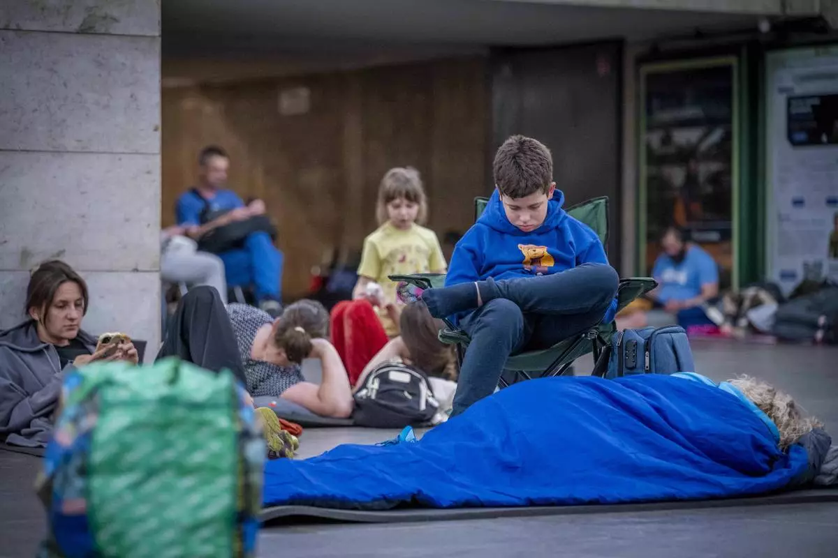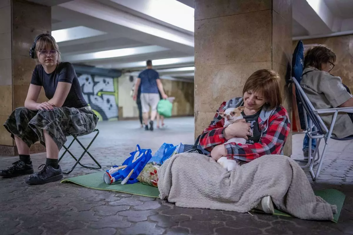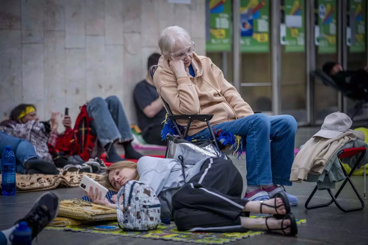 People hide in a metro station, being used as a bomb shelter, during a Russian drones attack in Kyiv, Ukraine, early hours Saturday, July 5, 2025. (AP Photo/Dan Bashakov)