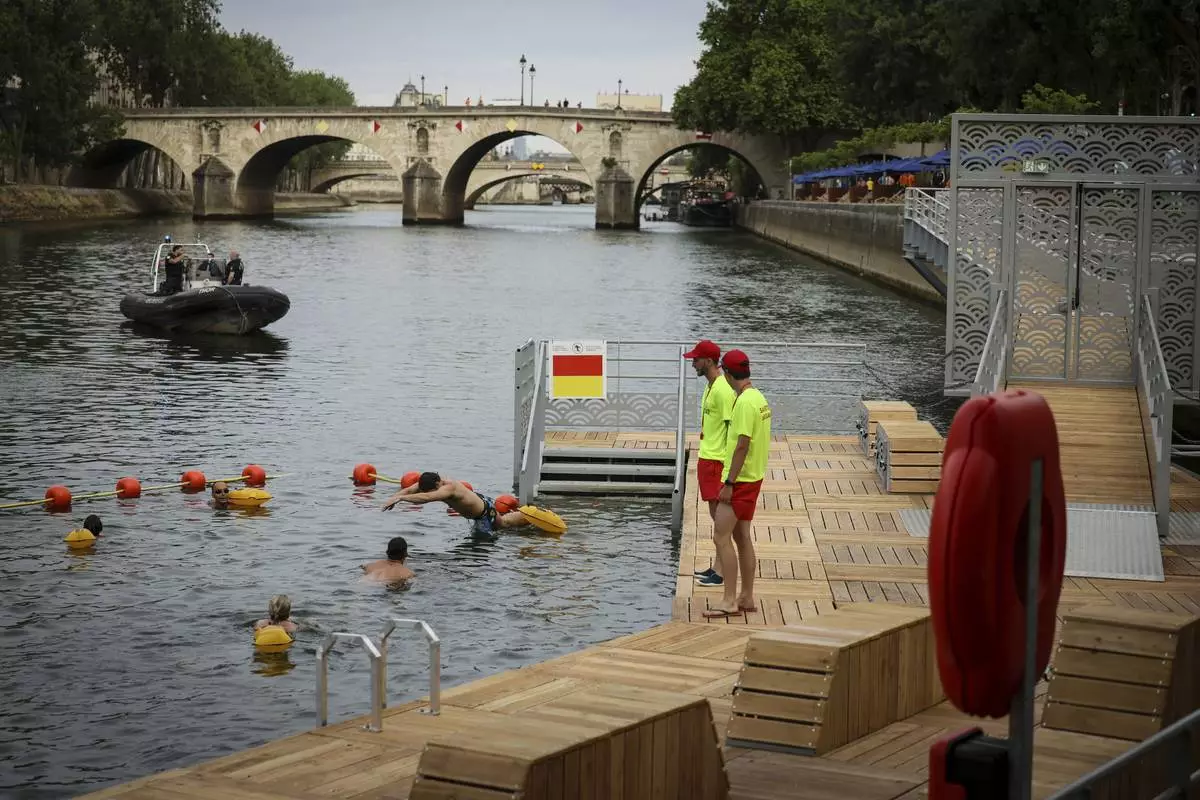 “It’s so nice to swim in the heart of the city, especially with the high temperatures we’ve been having lately,” said Amine Hocini, a 25-year-old construction worker from Paris. “I’m surprised because I thought it was going to be cooler and in fact, it’s much warmer than I thought.”