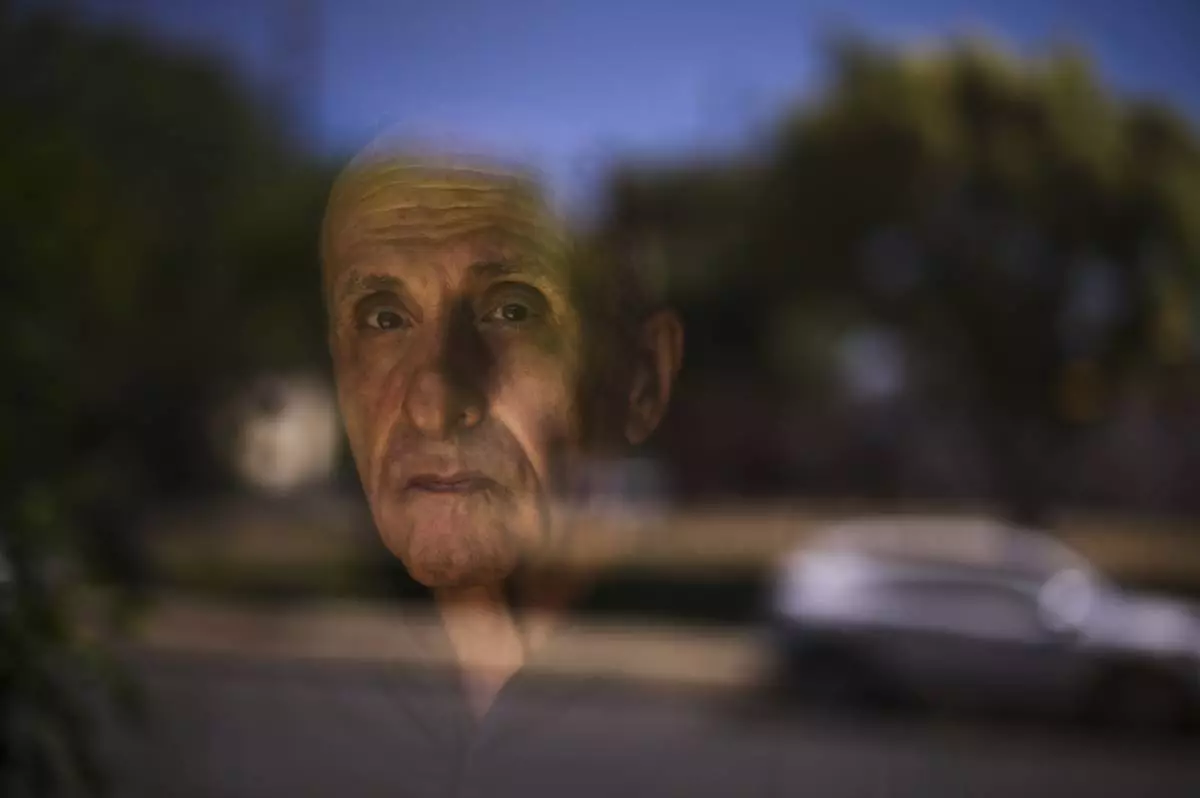 Kamran Afary, an associate professor of communication at California State University, Los Angeles, who immigrated from Iran in the 1970s, shows a photo of his grandfather in his apartment in the "Tehrangeles" neighborhood of Los Angeles, Sunday, June 29, 2025. (AP Photo/Jae C. Hong)
