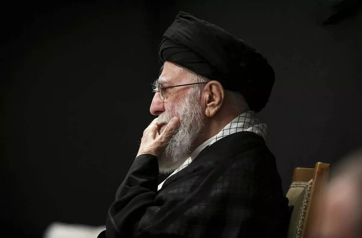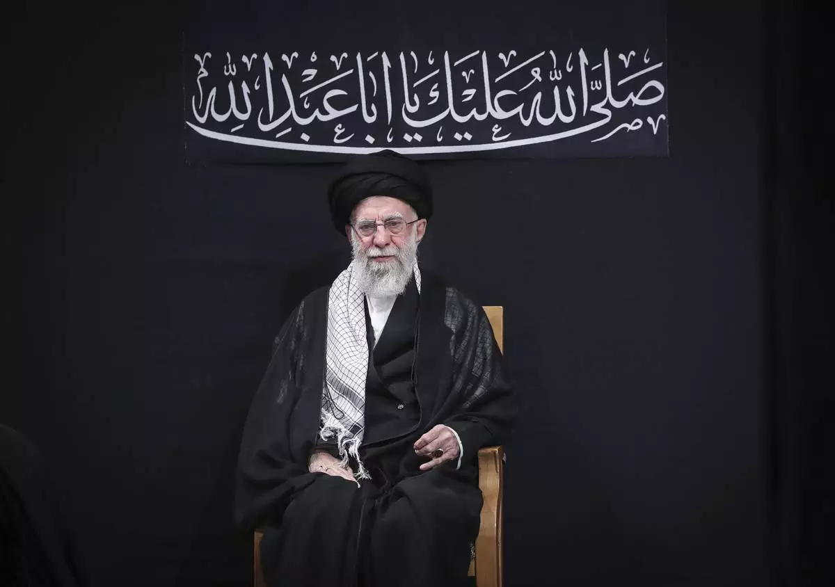 In this photo provided by the Office of the Iranian Supreme Leader, Supreme Leader Ayatollah Ali Khamenei attends a mourning ceremony commemorating the death anniversary of the Prophet Muhammad's grandson, Hussein, in Tehran, Iran, on Saturday, July 6, 2025. (Office of the Iranian Supreme Leader via AP)