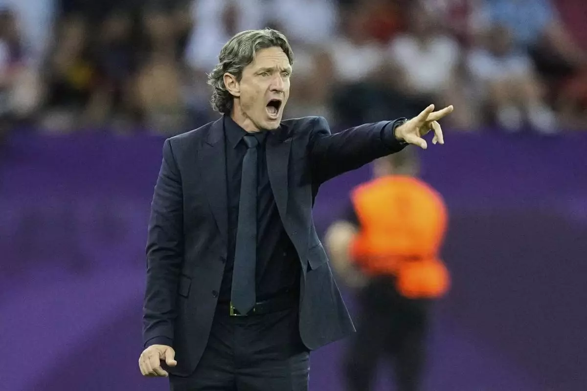 France head coach Laurent Bonadei gestures during the Euro 2025, group D, soccer match between France and England at Stadion Letzigrund in Zurich, Switzerland, Saturday, July 5, 2025. (AP Photo/Martin Meissner)
