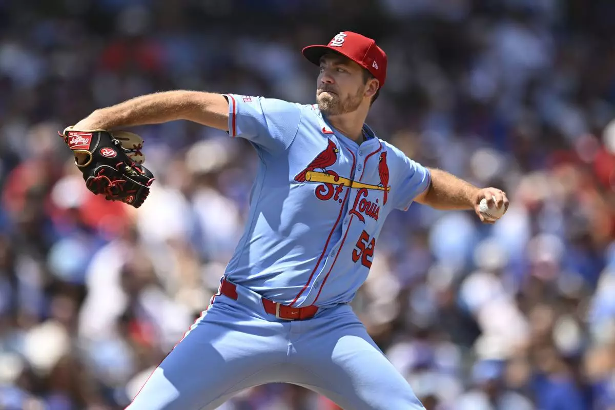 St. Louis Cardinals starter Matthew Liberatore delivers a pitch during the first inning of a baseball game against the Chicago Cubs Saturday, July 5, 2025, in Chicago. (AP Photo/Paul Beaty)