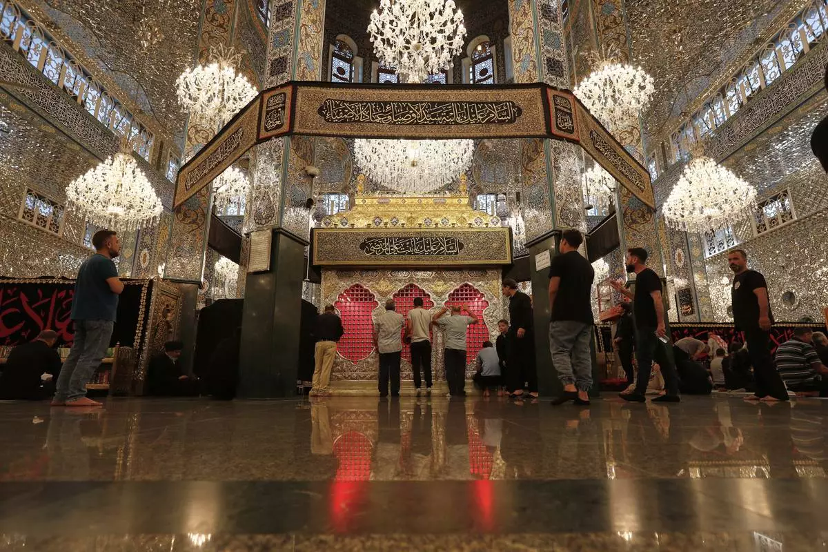Shiite worshippers enter at the shrine of al-Sayydah Zeinab, the grand daughter of Prophet Mohammed, where they attend Ashoura ritual, south of Damascus, Syria, Thursday, July 3, 2025. (AP Photo/Omar Sanadiki)