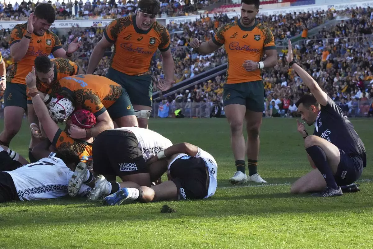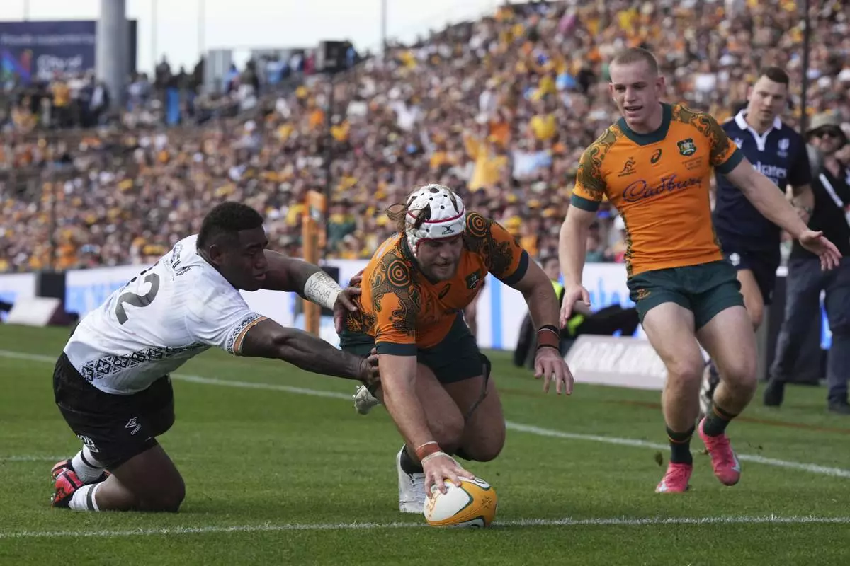 NEWCASTLE, Australia (AP) — A last-gasp try by captain Harry Wilson has salvaged a dramatic 21-18 win for Australia on Sunday in its international season-opener against Fiji.