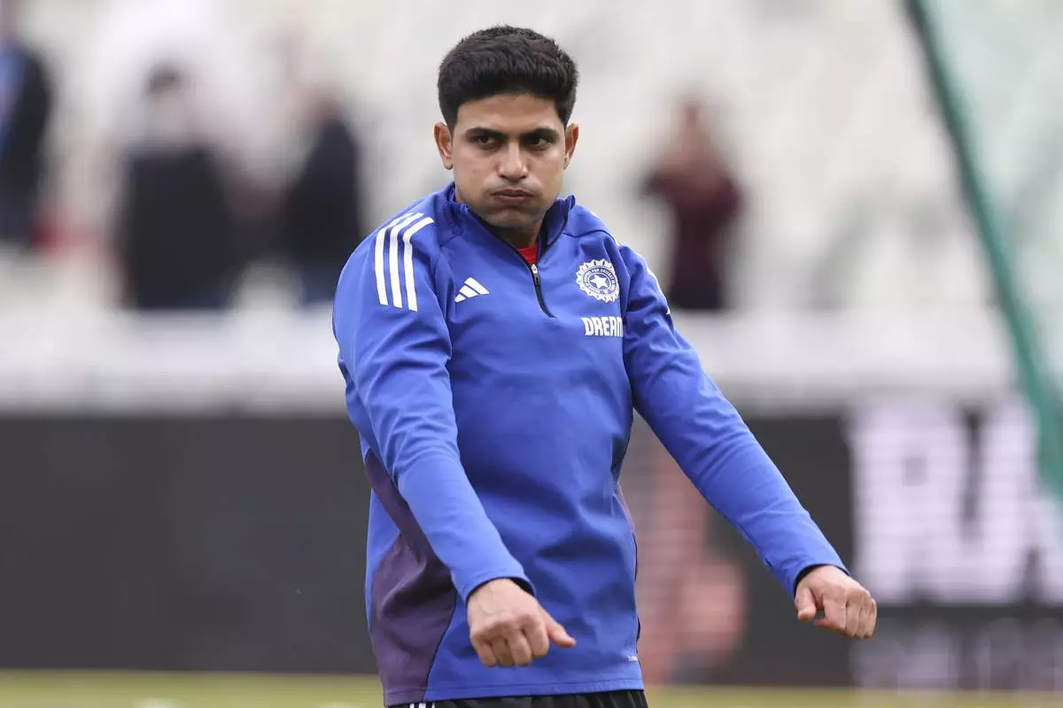 India's captain Shubman Gill warms up before the start of play on day five of the second cricket test match between England and India at Edgbaston in Birmingham, England, Sunday, July 6, 2025. (AP Photo/Scott Heppell)