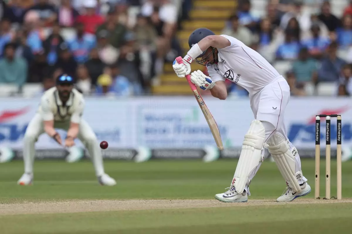 England's Ollie Pope bats on day five of the second cricket test match between England and India at Edgbaston in Birmingham, England, Sunday, July 6, 2025. (AP Photo/Scott Heppell)
