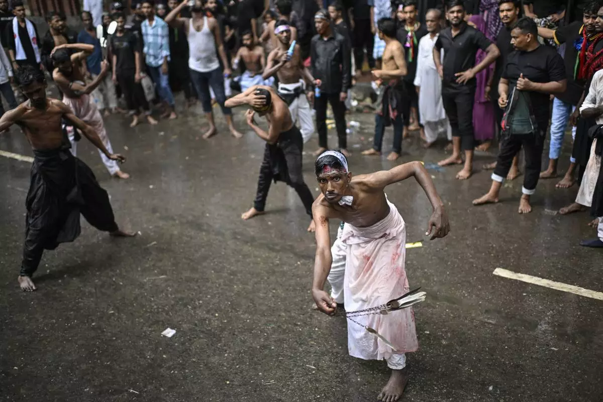 Bangladeshi Shiite Muslims participate in an Ashoura commemoration marking the 7th-century death of Imam Hussein, the grandson of the Prophet Muhammad, in Dhaka, Bangladesh, Sunday, July 6, 2025. (AP Photo/Mahmud Hossain Opu)