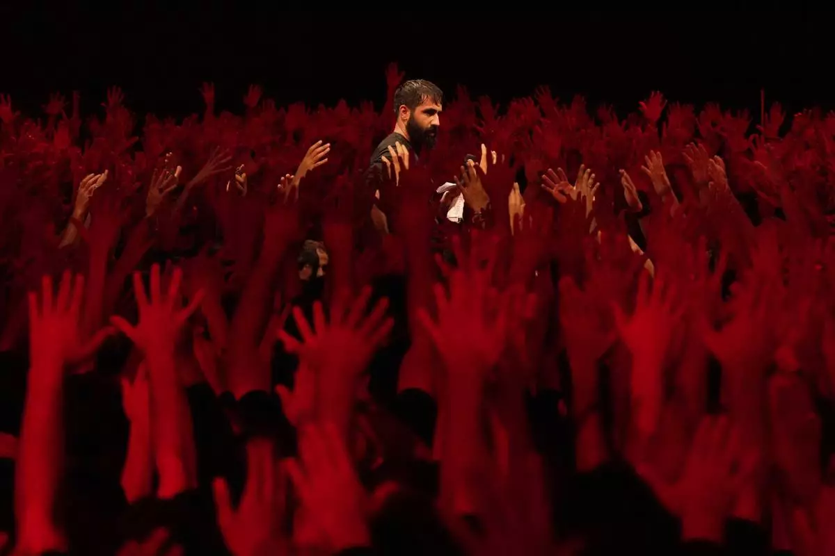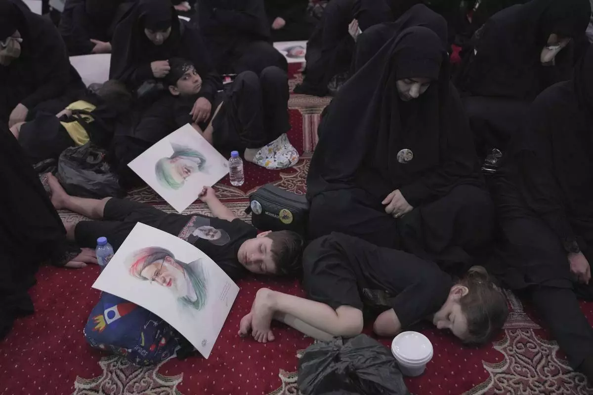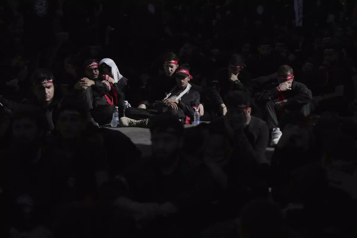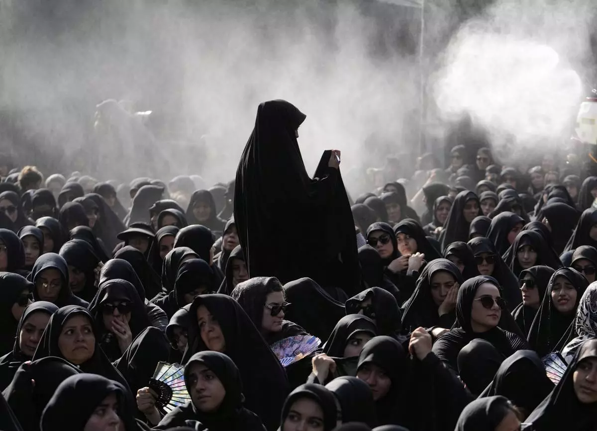 Iranian Shiite Muslims mourn in a ceremony in Tehran Iran, on Saturday, July 5, 2025, on the eve of Ashoura, the death anniversary of Prophet Muhammad's grandson, Hussein, who was killed with his 72 companions in a 7th-century battle in Karbala in present-day Iraq. (AP Photo/Vahid Salemi)