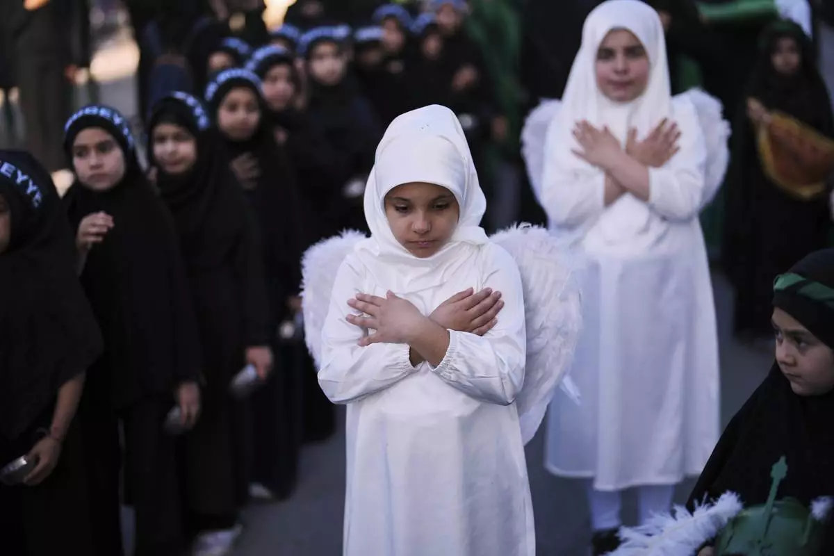 A Shiite faithful Muslim child attends an Ashoura procession to mark the tenth day of the Muharram month, in Istanbul, Turkey, Saturday, July 5, 2025. (AP Photo/Francisco Seco)