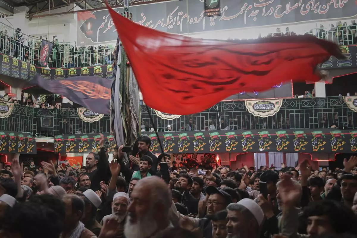 Afghan Shia attend a sermon marking Ashoura, the Shiite Muslim commemoration of the 7th-century death of Imam Hussein, the grandson of the Prophet Muhammad, at the Chendawol Mosque in Kabul, Afghanistan, Sunday, July 6, 2025. (AP Photo/Siddiqullah Alizai)