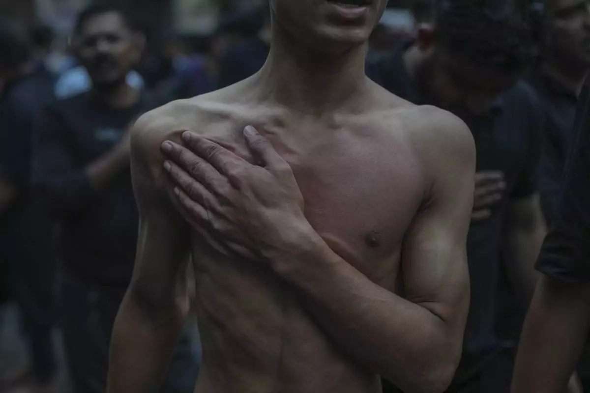 A Shiite Muslim beats his chest during an Ashoura procession marking the 7th-century death of Imam Hussein, the grandson of the Prophet Muhammad, in Mumbai, India, Sunday, July 6, 2025. (AP Photo/Rafiq Maqbool)