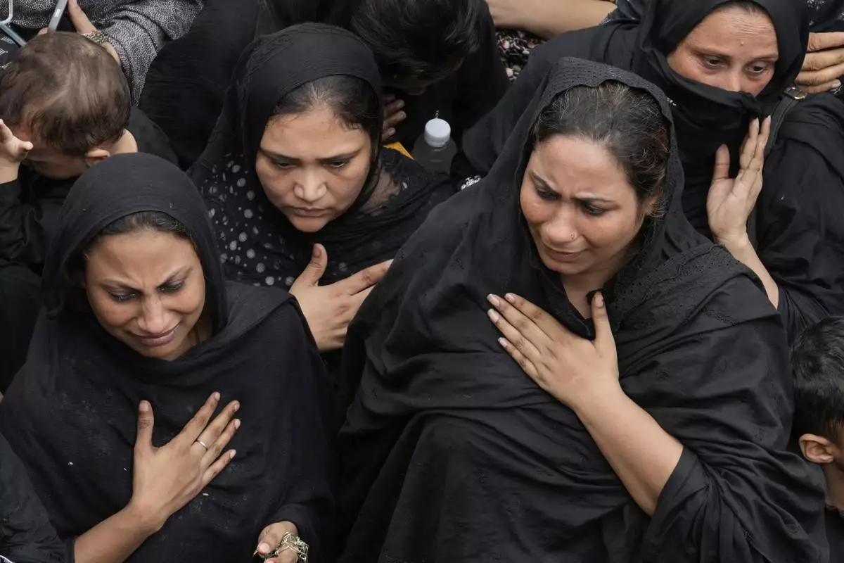 Shiite Muslim women take part in a ritual during an Ashoura procession in Lahore, Pakistan, Sunday, July 6, 2025. (AP Photo/K.M. Chaudary)