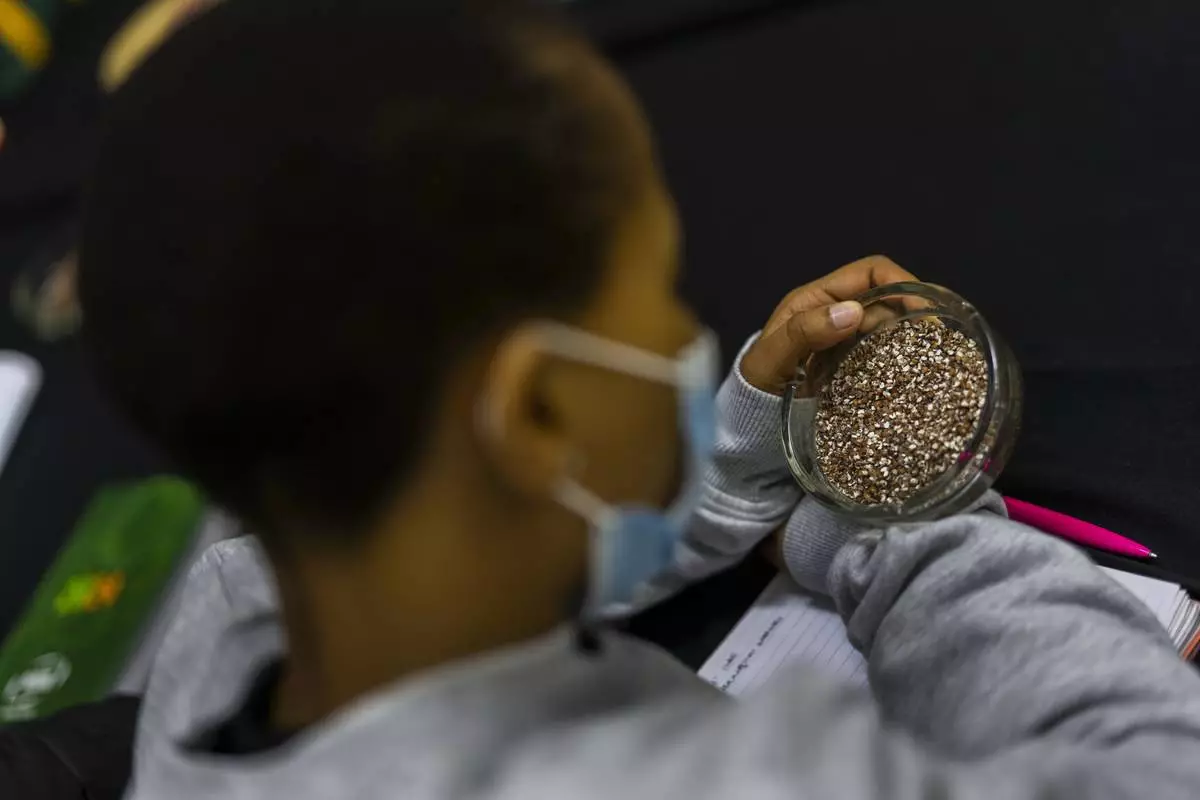 Students prepare to brew beer with South African beer brewing master Apiwe Nxusani-Mawela, in Johannesburg, South Africa, Thursday, June 5, 2025. (AP Photo/Jerome Delay)