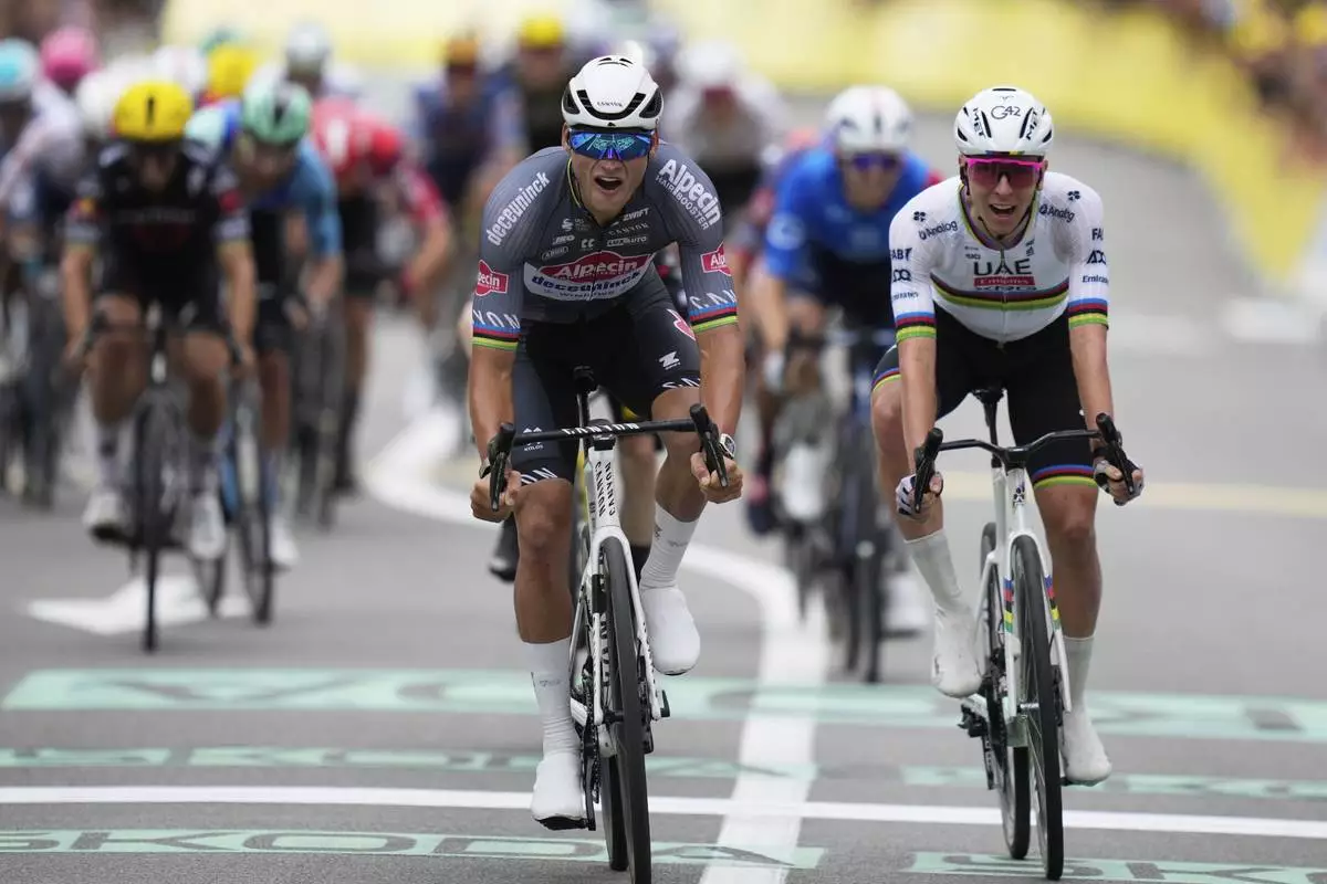 BOULOGNE-SUR-MER, France (AP) — Dutch cyclist Mathieu van der Poel won the hilly second stage of the Tour de France on Sunday after holding off defending champion Tadej Pogačar and two-time winner Jonas Vingegaard in a sprint to the line.