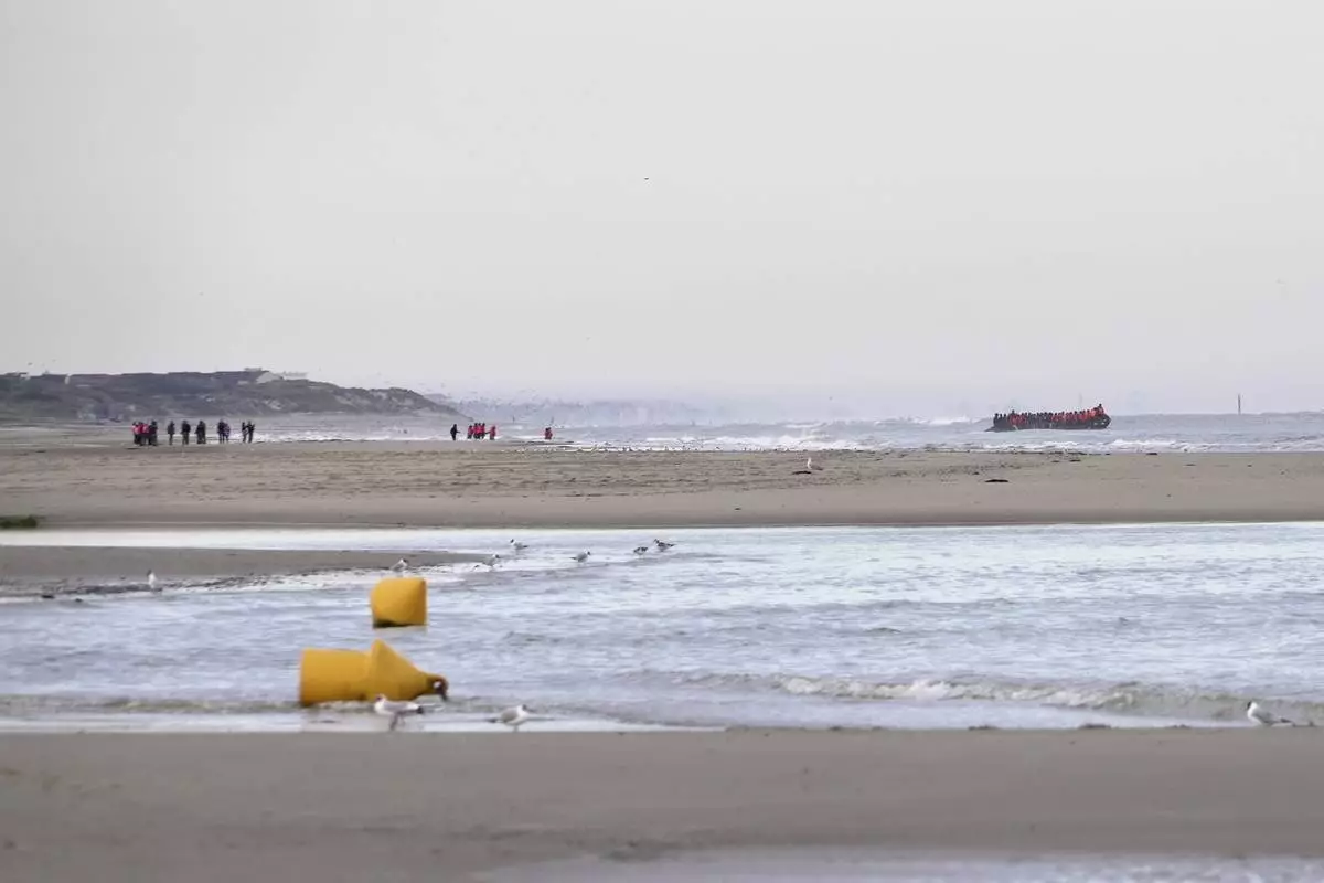 AP saw a 6 a.m. pickup Friday on Hardelot beach south of Boulogne. Many dozens of people squeezed aboard, straddling the sausage-like inflated sides — one foot in the sea, the other in the boat. It left about a half-dozen people on the beach, some in the water, apparently for lack of room. Gendarmes on the beach watched it motor slowly away.