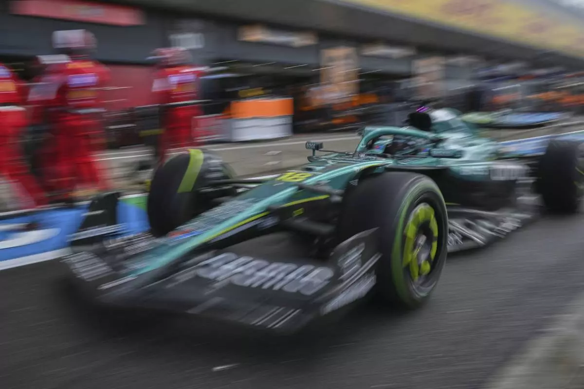 Aston Martin driver Lance Stroll of Canada leaves the pit lane during the British Formula One Grand Prix race at the Silverstone racetrack in Silverstone, England, Sunday, July 6, 2025. AP Photo/Andrej Isakovic, Pool)