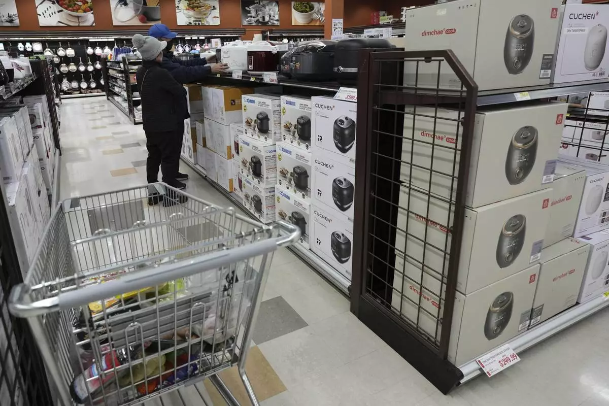 FILE - Shoppers shop electric rice cookers imported from Japan and Korea at the H Mart in Niles, Ill., April 3, 2025. (AP Photo/Nam Y. Huh, File)