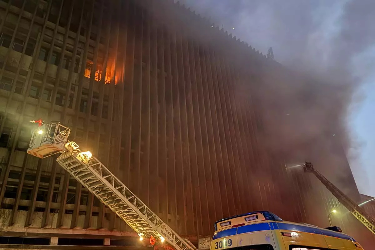 Ambulances and firetrucks were on site as plumes of dark smoke rose in the downtown. Firefighters put up ladders as firetrucks spewed water to contain the blaze, while security officials cordoned off the area.