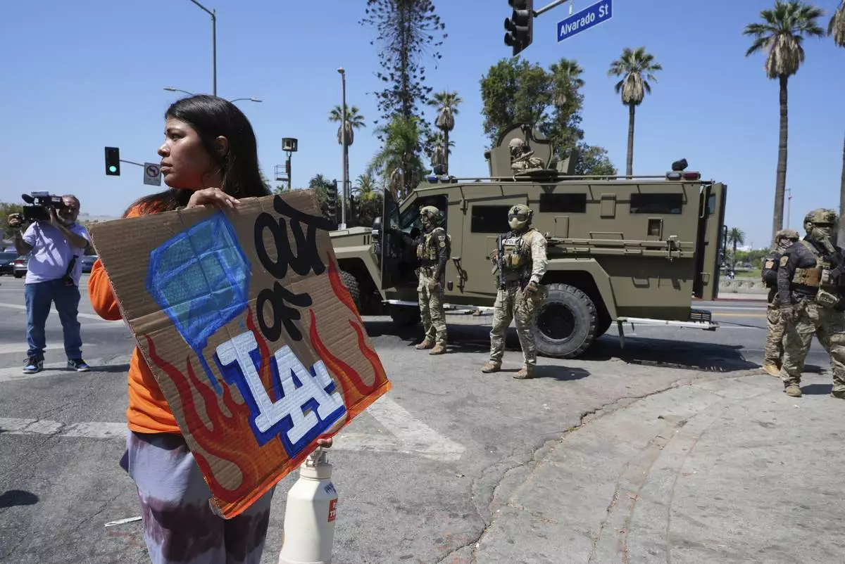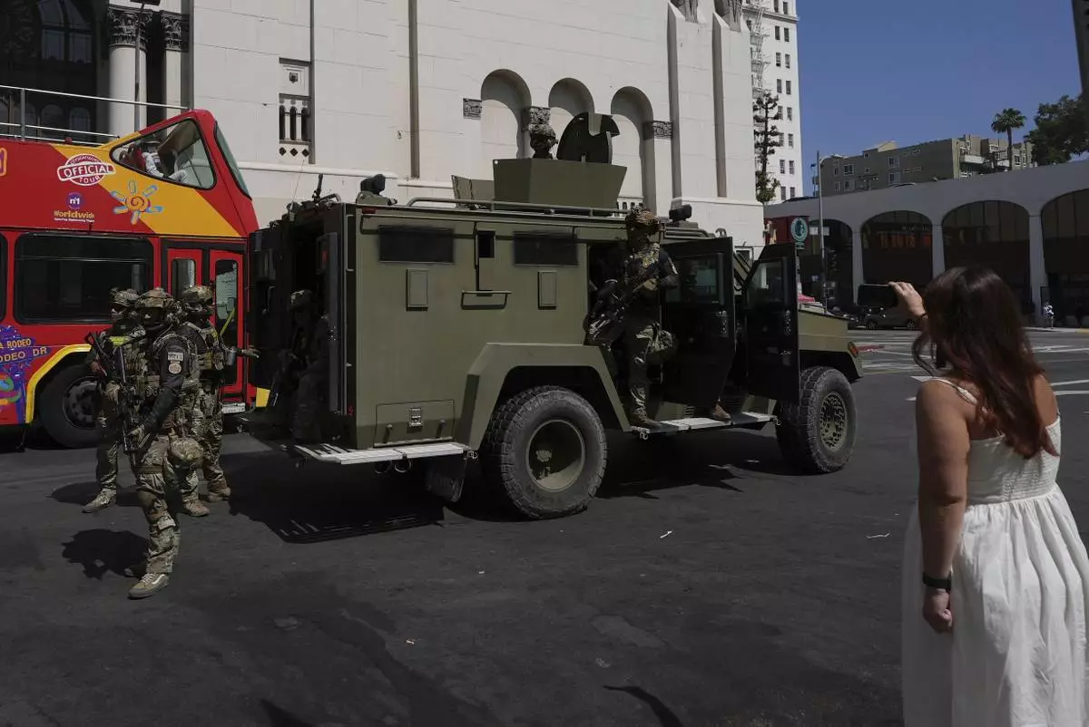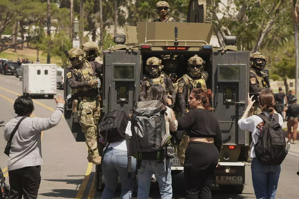 LOS ANGELES (AP) — Los Angeles residents and Mayor Karen Bass watched federal officers, some on horseback, descend on MacArthur Park on Monday for about an hour. About 90 members of the California National Guard were deployed to the neighborhood, which has a large immigrant population.