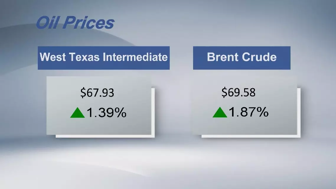 The West Texas Intermediate for August delivery gained 93 cents, or 1.39 percent, to settle at 67.93 U.S. dollars a barrel on the New York Mercantile Exchange. Brent crude for September delivery went up 1.28 dollars, or 1.87 percent, to settle at 69.58 dollars a barrel on the London ICE Futures Exchange.