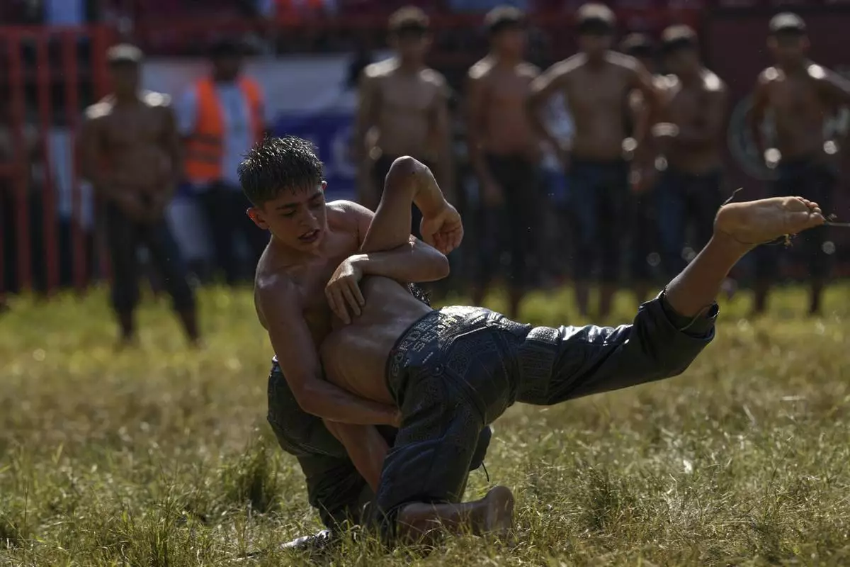 The sport, which is on UNESCO’s intangible cultural heritage list, sees wrestlers cover themselves in olive oil and try to press their opponent’s back to the ground to win the bout.