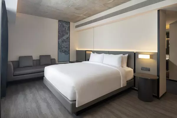 The hotel's interiors are inspired by Bangkok's rhythm and resilience, clean lines, airy spaces, and subtle local touches. Guest rooms feature plush bedding and Thai artwork by Kwanchai Lichaikul, who's Under Contraction series offers guests a contemplative visual journey rooted in traditional storytelling and modern transformation. These spaces encourage rest, reflection, and reconnection.