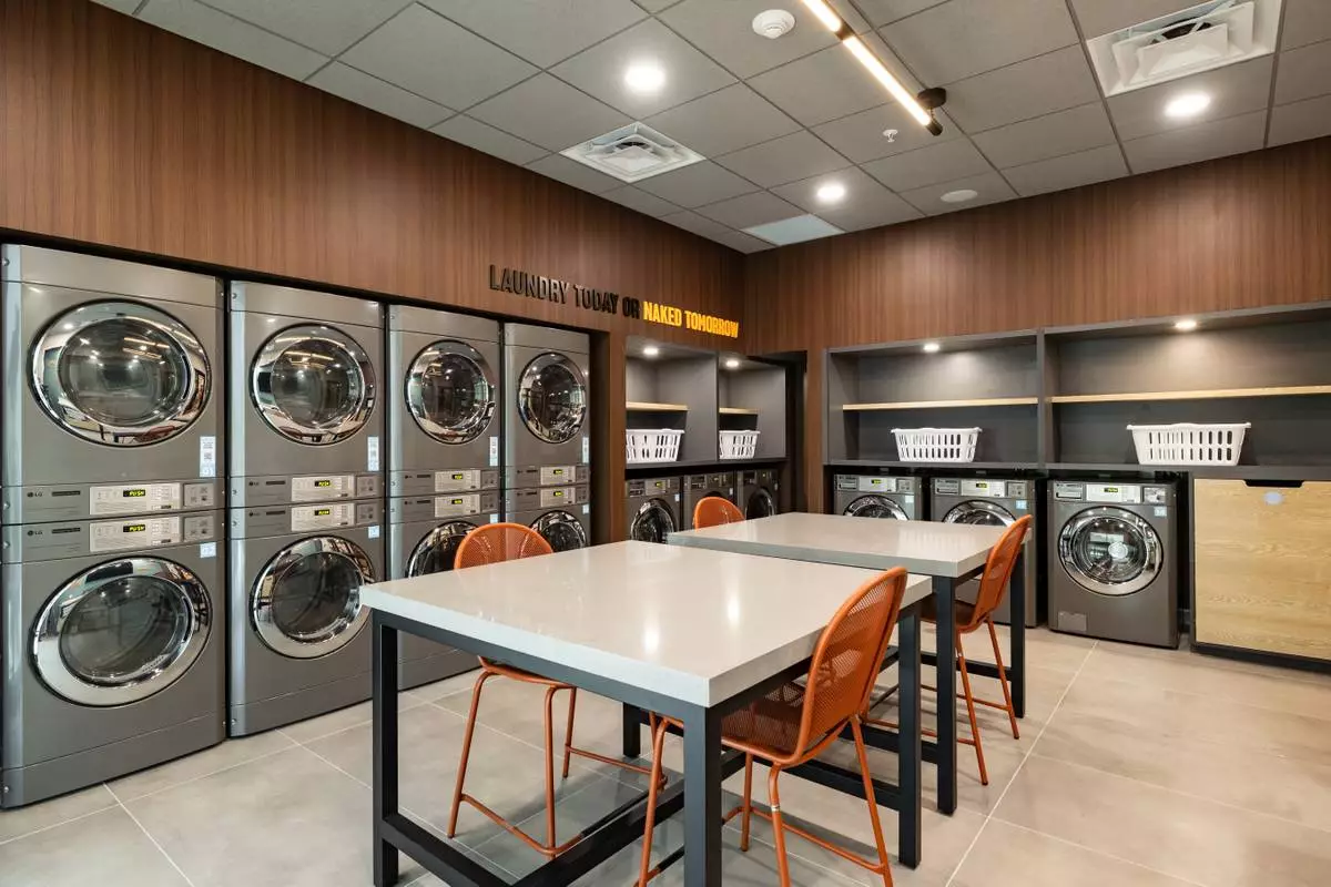 Guest laundry facility at LivSmart Studios by Hilton Tullahoma. The hotel is the first for LivSmart Studios, a new extended-stay brand that blends the comfort and functionality of studio apartment-style accommodations with the consistency, value and hospitality travelers expect when they stay with Hilton. (Photo: Hilton)