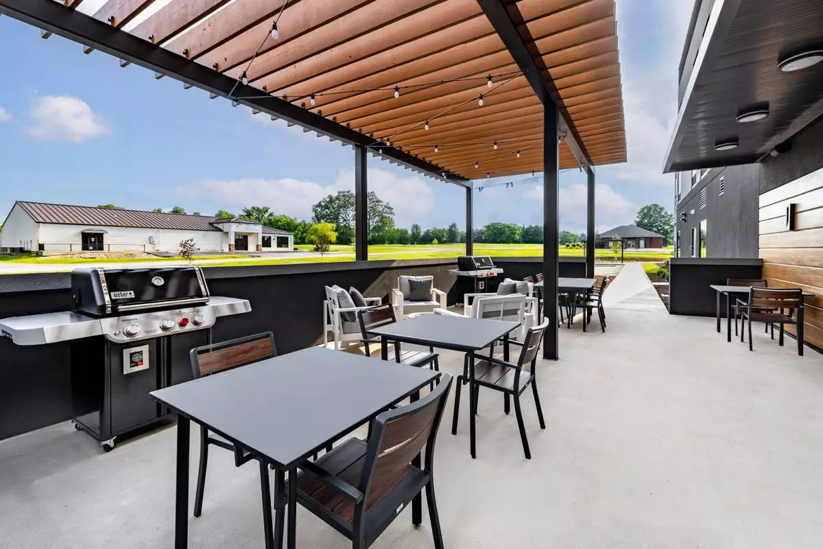Outdoor patio at LivSmart Studios by Hilton Tullahoma. The hotel is the first for LivSmart Studios, a new extended-stay brand that blends the comfort and functionality of studio apartment-style accommodations with the consistency, value and hospitality travelers expect when they stay with Hilton. (Photo: Hilton)