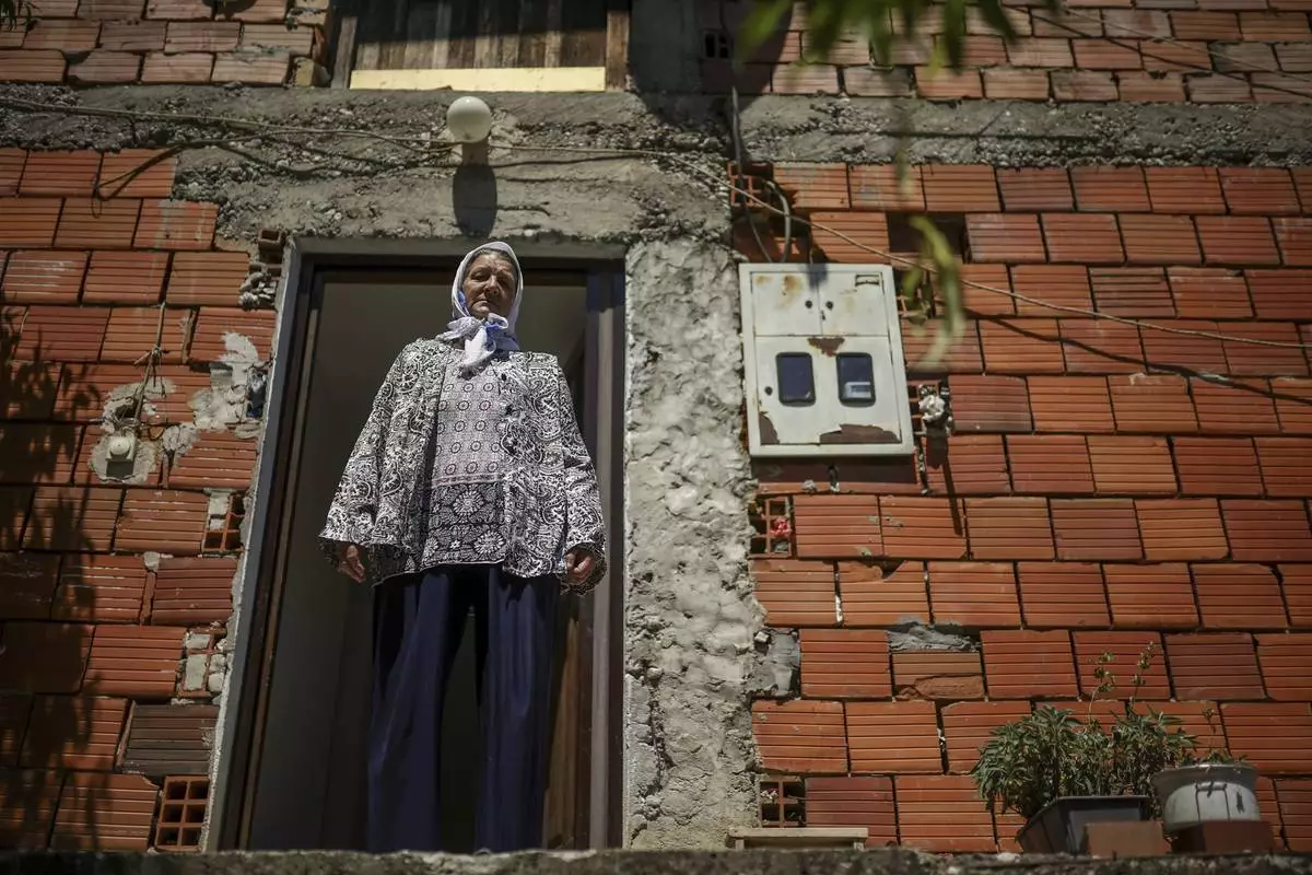 Sefika Mustafic, 72, stands in front of her home in the village of Potocari near Srebrenica, Bosnia, on June 29, 2025. During the genocide a total of 15 members of her family were killed. (AP Photo/Armin Durgut)