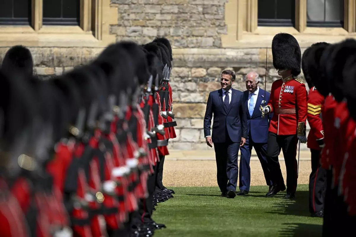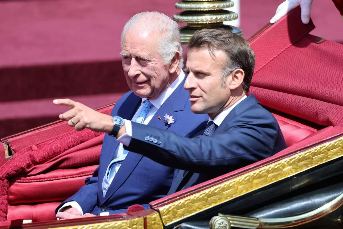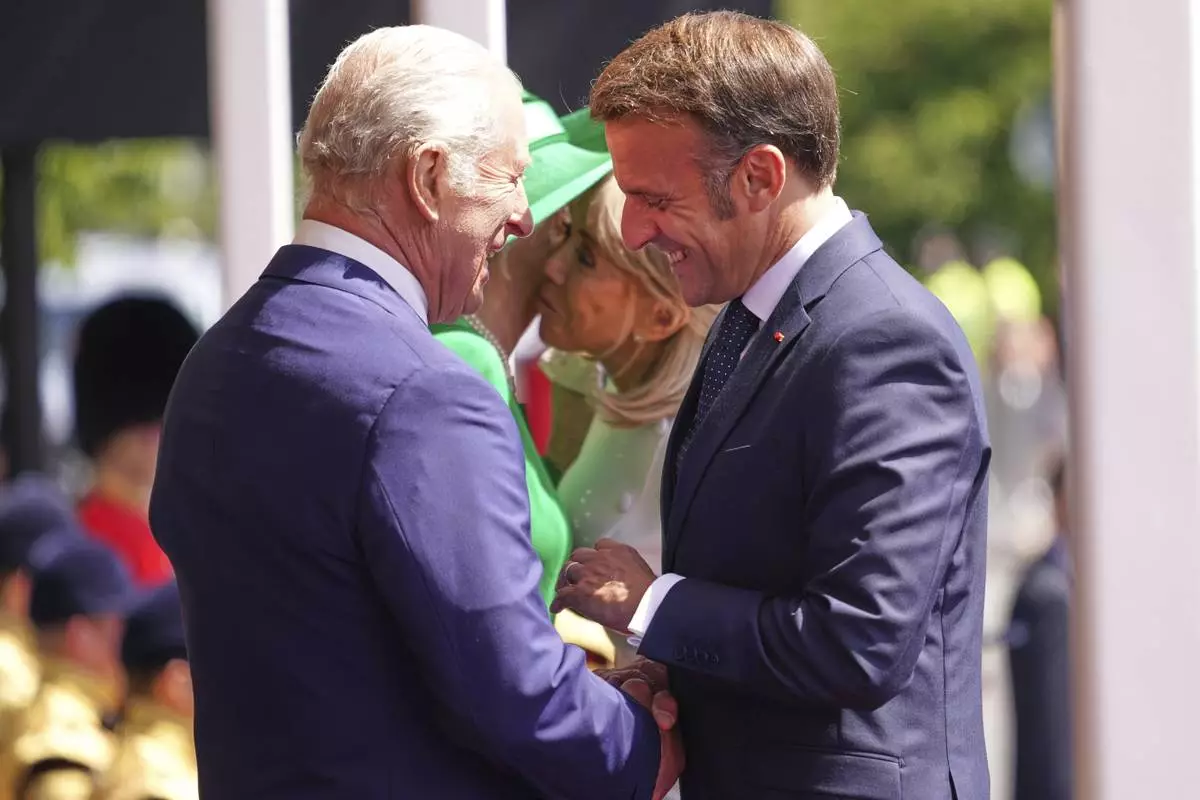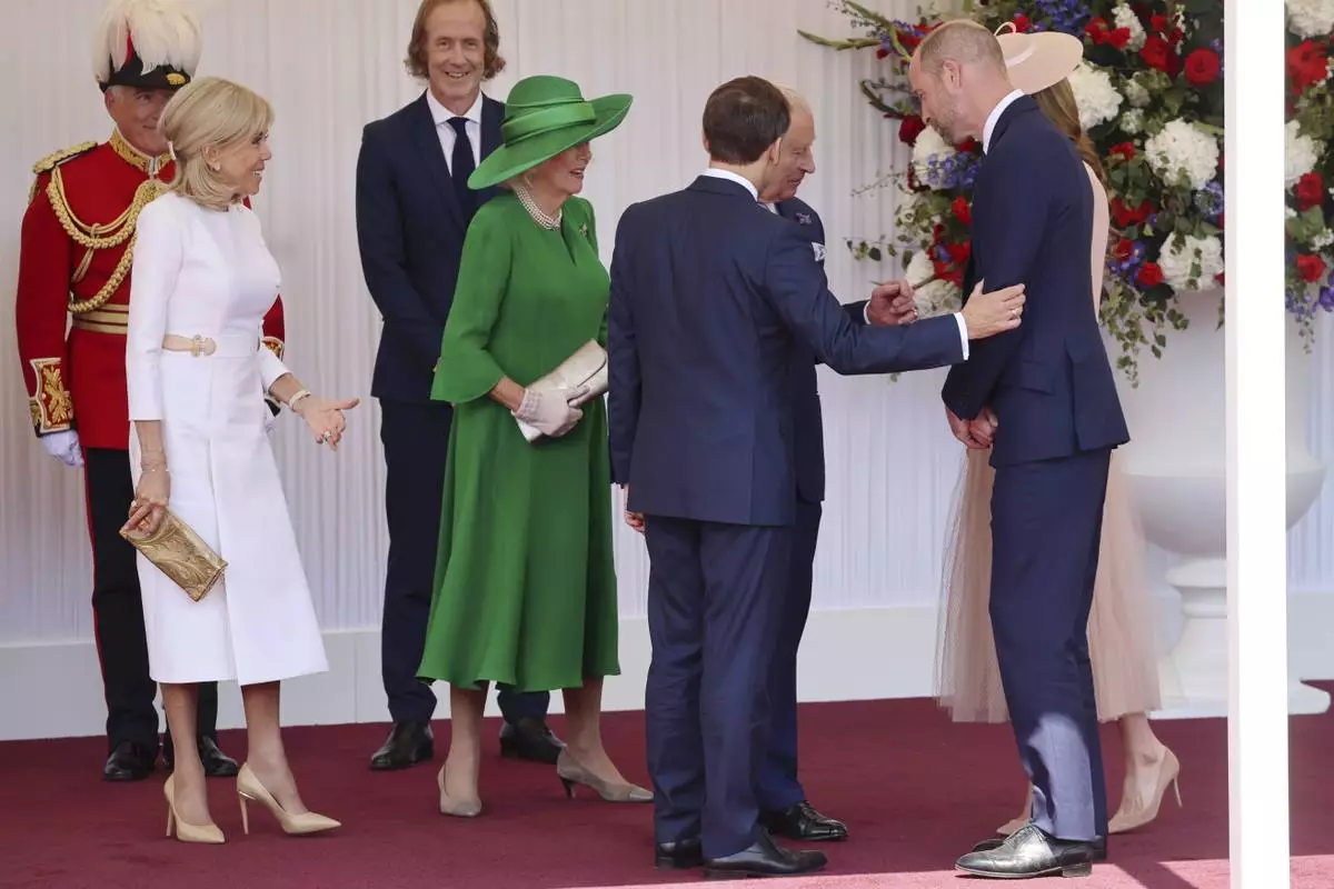 Prince William and the Princess of Wales greeted the Macrons at RAF Northolt outside London. King Charles III later formally welcomed the couple later at Windsor Castle, where they rode in a horse-drawn carriage and reviewed a military guard of honor. The first day ended with a state banquet at the castle.