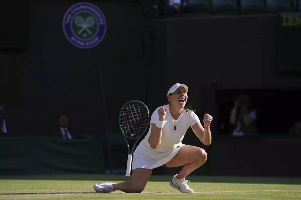 LONDON (AP) — Amanda Anisimova brought her nephew, Jackson, onto the grass at Wimbledon's No. 1 Court to help celebrate reaching her first Grand Slam semifinal in six years after saving five set points in a “super stressful” tiebreaker and finally converting her fourth match point Tuesday for a 6-1, 7-6 (9) victory over Anastasia Pavlyuchenkova.