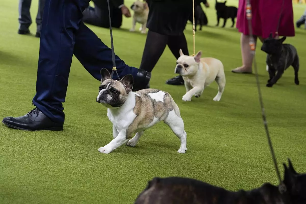 FILE - French bulldogs compete in breed group judging during the 148th Westminster Kennel Club Dog show, May 13, 2024, at the USTA Billie Jean King National Tennis Center in New York. (AP Photo/Julia Nikhinson, File)