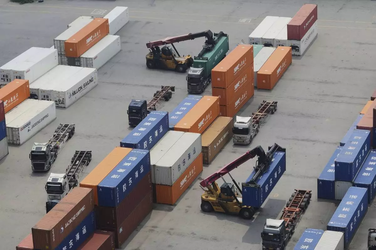 Cranes and shipping containers are seen at a port in Pyeongtaek, South Korea, Tuesday, July 8, 2025. (AP Photo/Ahn Young-joon)