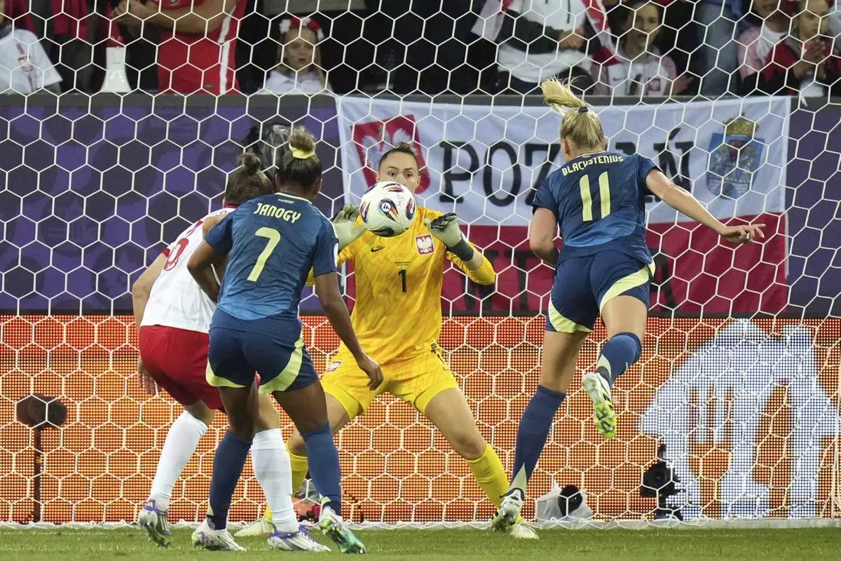 Poland almost scored a consolation goal in stoppage time that would have dropped Sweden below Germany, but Milena Kokosz’s long-range shot struck the inside of the post and went to safety.