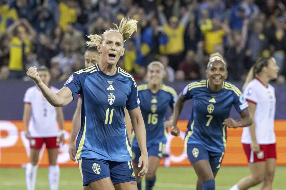 Sweden had already struck the crossbar with two headers before center forward Stina Blackstenius opened the scoring in the 28th. Captain Kosovare Asllani padded the lead in the 52nd and substitute Lina Hurtig got a key third in the 77th.
