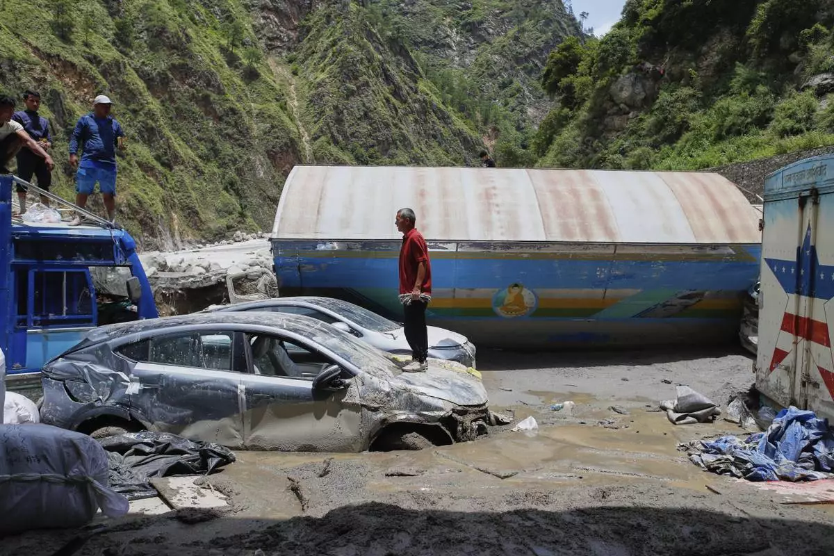 The flooding on the Bhotekoshi River early Tuesday destroyed the Friendship Bridge at Rasuwagadi, which is 120 kilometers (75 miles) north of the capital, Kathmandu. Several houses and trucks that were parked at the border for customs inspections also were swept away. Hundreds of electric vehicles imported from China had been parked at the border point.