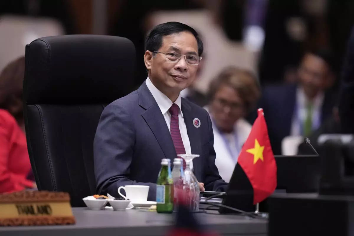 Vietnam's Foreign Minister Bui Thanh Son attends a plenary session of the Association of Southeast Asian Nations (ASEAN) Foreign Ministers' meeting at the Convention Centre in Kuala Lumpur, Malaysia, Wednesday, July 9, 2025. (AP Photo/Vincent Thian)